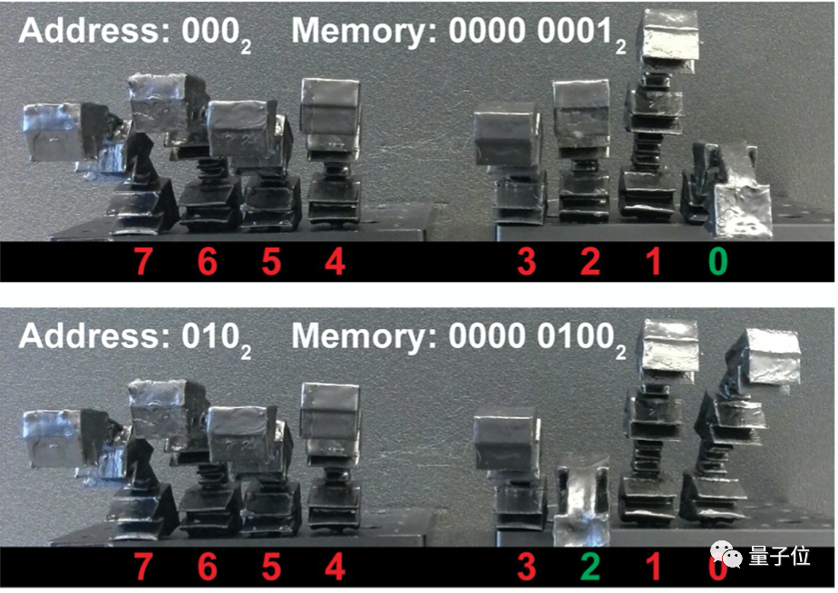 比如在这个弹钢琴的软体机器人身上,研究人员制作了一个八位的非易失性RAM。