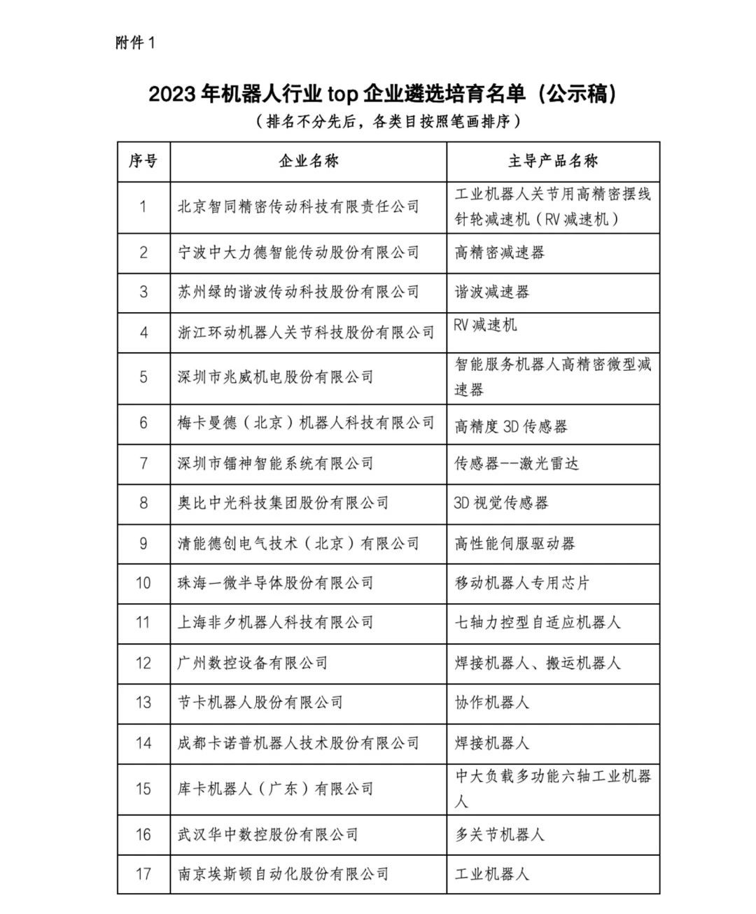 关于2023机器人行业TOP企业遴选培育名单的公示
