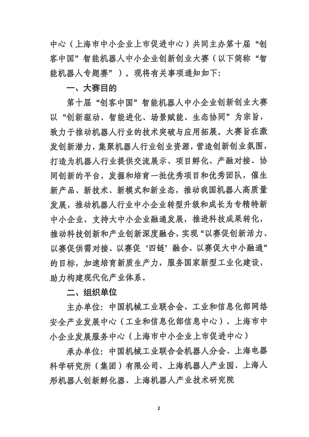 2025年4月17日,第十届“创客中国”智能机器人中小企业创新创业大赛新闻发布会在上海召开,大赛正式启动。本次大赛由中国机械工业联合会、工业和信息化部网络安全产业发展中心(工业和信息化部信息中心)、上海市普陀区政府、上海市中小企业发展服务中心(上海市中小企业上市促进中心)主办,由中国机械工业联合会机器人分会、上海电器科学研究所(集团)有限公司、米兰·(milan)中国有限公司官方网站承办。