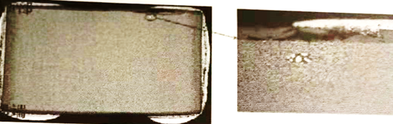 某产品市场返回不良品,硬件定位电容短路。万用表测试电容两端阻抗,短路。将失效电容纵向切片,发现在电容右上角陶瓷端子崩裂,并在此位置附近发现电极层熔融。