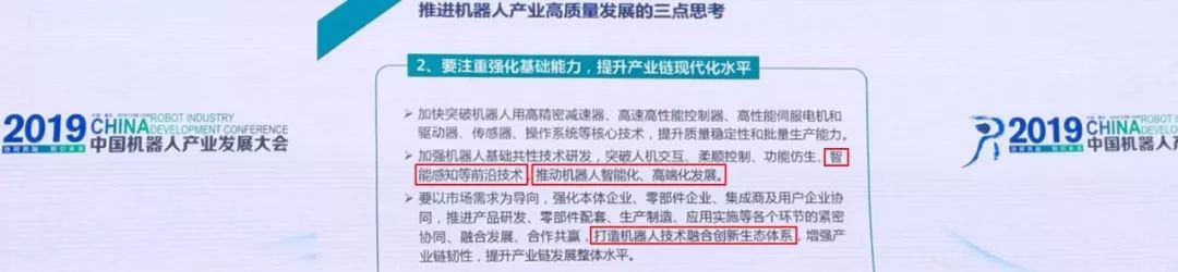 针对目前国内外机器人及智能制造市场纷争中,国产机器人企业们依然在探索与实践阶段,工业和信息化部装备工业司罗俊杰在大会上提出三点思考。强调要推动国产机器人智能化高端化发展。