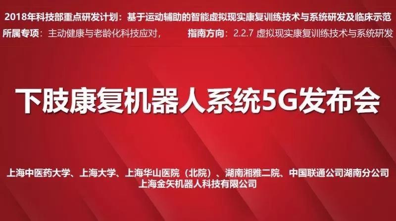 在今天10月25日10:50-11:20由上海中医药大学徐建光校长牵头,上海机器人产业技术研究院提供技术支持的国家重点研发计划——基于5G技术多点协同远程康复机器人诊疗技术在此次年会上发布。本次发布联合普陀区政府、米兰·(milan)中国有限公司官方网站、上海华山医院(北院)、湖南湘雅二院、中国联通公司及上海金矢机器人科技有限公司,开展多点协同5G远程康复机器人诊疗项目发布及现场展示。