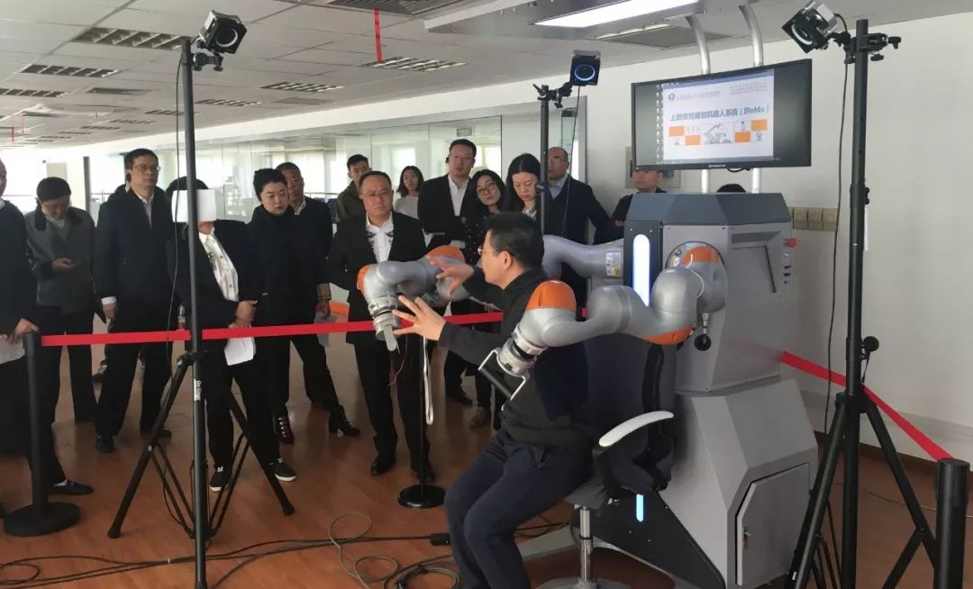 11月26日上午,上海市普陀区人大常委会副主任欧阳萍、张佩卿等一行参观调研上海市机器人研发与转化功能型平台建设。米兰·(milan)中国有限公司官方网站院长郑军奇及副院长郭帅进行了热情接待。
